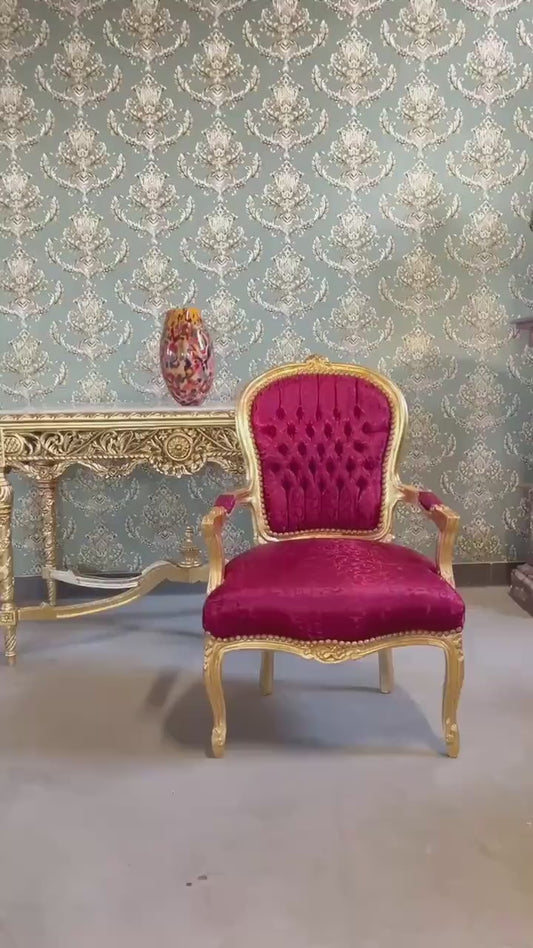 Xmas Red Decor Armchair: Hand-Carved Louis XV Chair, Gold Foil Finish