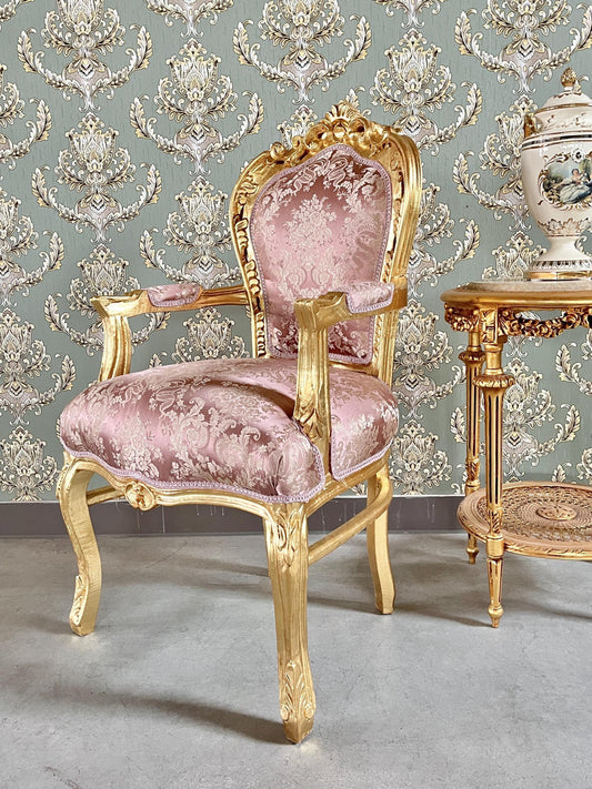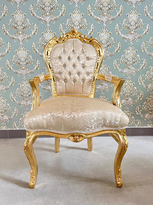 Accent Armchair French Louis XV Style in Beige Color Retro Baroque Style Chair for Living Room Handmade Armchair Home Decor