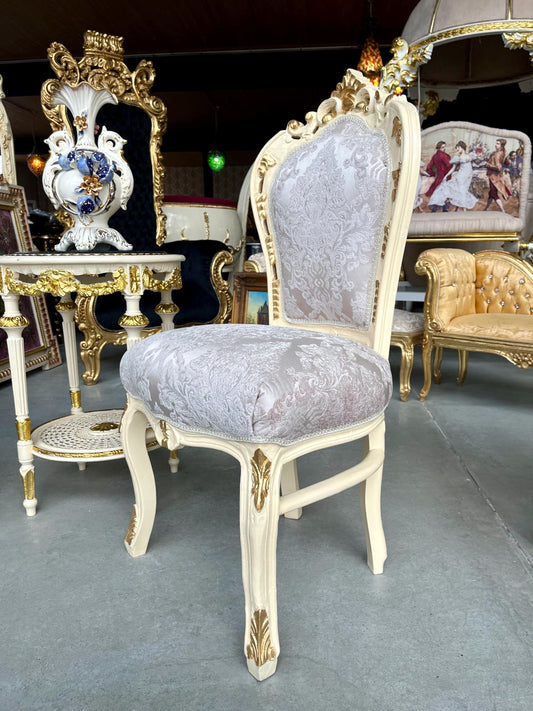 Chair Classic Baroque Style in Silver Black Pattern Dining Chair in Silver Finish for Home Decor