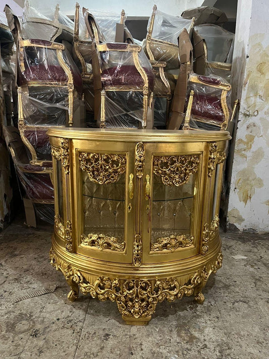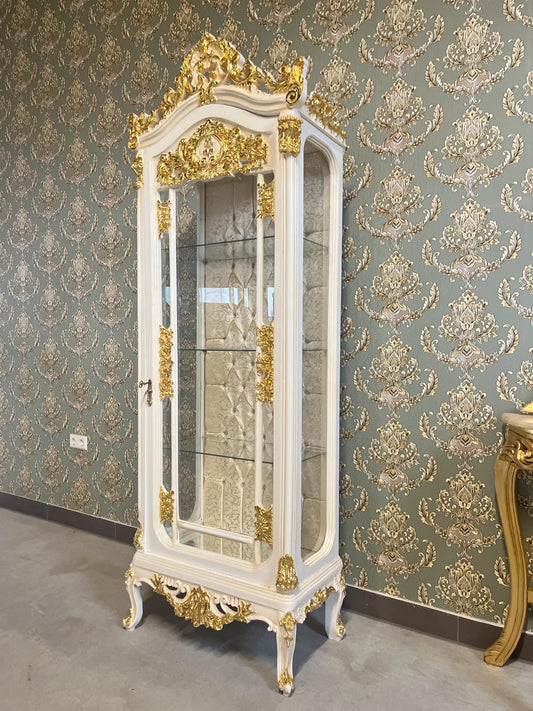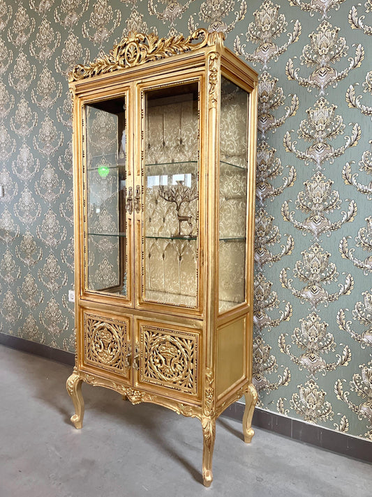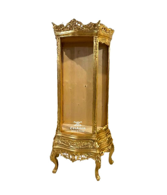 Display Cabinet French Louis Style Showcase in Gold Finish Retro Baroque Antique Style for Home Decor- Made to Order