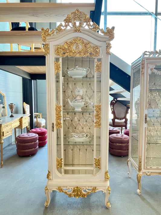 Display Cabinet in Gold Wooden French Baroque Style Glass Showcase in Glass Mirror Made-To-Order