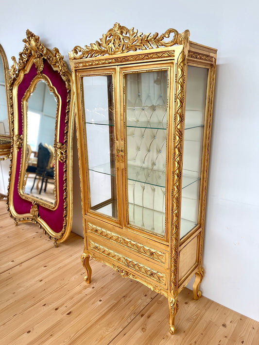 Display Cabinet Wooden French Louis XV Style Showcase Antique Baroque Style Reproduction in Gold Finish