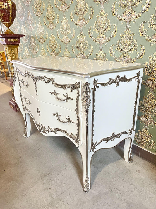 Hand-Carved Louis XV Style Dresser: Retro Baroque Chest with Brass Ornaments