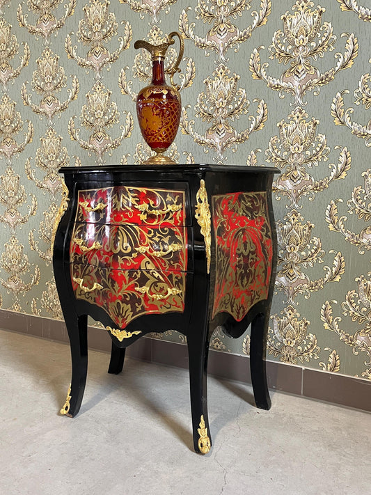 Handmade Black Baroque Nightstand: Rococo Style Chest of Drawers