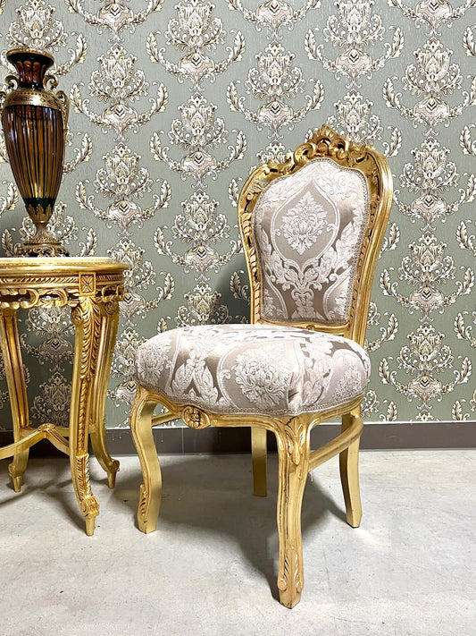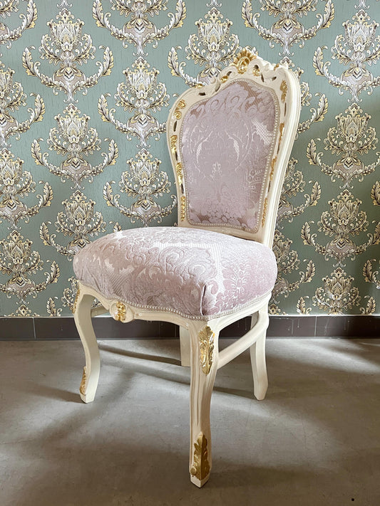 Accent Chair in Ivory Damask French Louis XV Style Dining Chair Handmade in Solid Wood Antique Baroque Style Flower Pattern for Dining Room