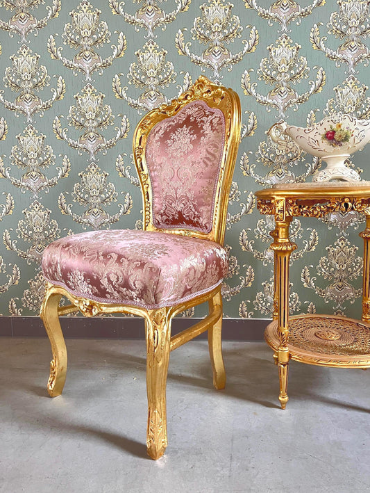 Accent Chair in Shiny Pink Color French Baroque Rococo Style Chair Antique Style Dining Chair in Gold Finish for Dining Room Home Decor