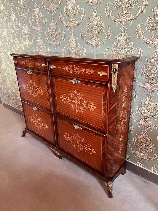 Shoe Cabinet Retro Baroque Antique Style Wooden Brown Cabinet Stored Up to 24 Pairs for Home Decoration