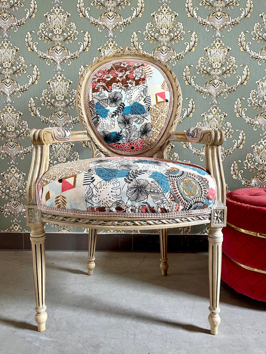 Sessel Barock Rokoko Stil /Armchair Retro Baroque Rococo Style Sofa Chair Nostalgic French Antique Style in Colorful Velvet - Made to Order