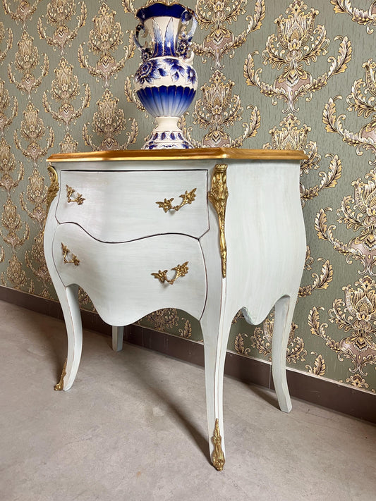 Small Chest of Drawer in Sky Blue Color French Baroque Style Night Stand Brushed Blue Color Dresser for Bedroom Decor