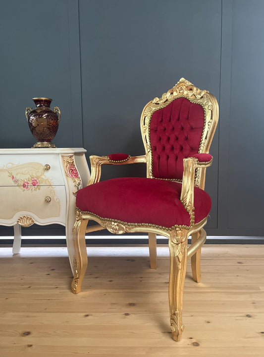 Armchair French Louis Style Red Velvet Dining Chair Antique Style Baroque Rococo Style Armchair in Gold Finish for Home