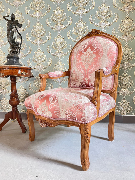 Armchair French Louis Style in Pink Flower Damask Retro Baroque Rococo Style Lounge Chair For Home Decor