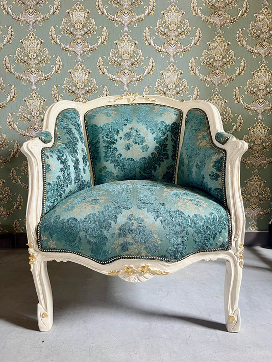 Armchair French Louis Style Accent Chair Baroque Rococo Antique Style in Pink or Turquoise Floral Pattern for Home Decor for Lodge Lobby