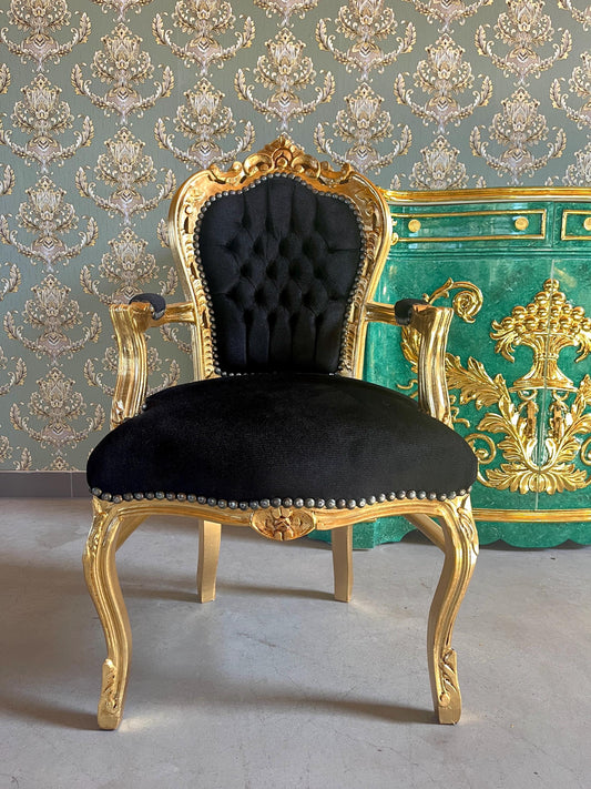 Armchair French Louis Style Black Velvet Chair Antique Style Baroque Rococo Style Armchair in Gold Finish Velvet Black for Home