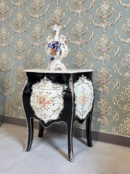 Baroque Nightstand: Hand-Painted Floral Accent, French Antique Style