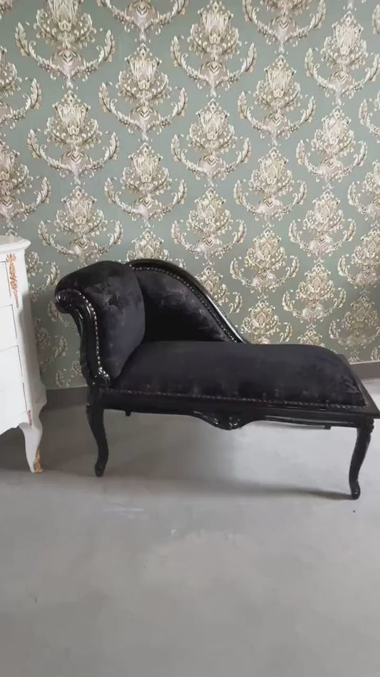 French Louis Style Black Velvet Chaise Lounge: Retro Baroque Ottoman