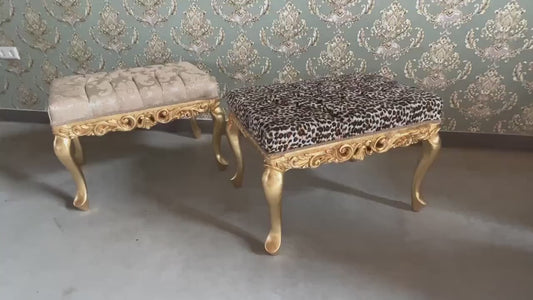 Leopard Velvet Ottoman Bench: Retro Rococo Gold Finish