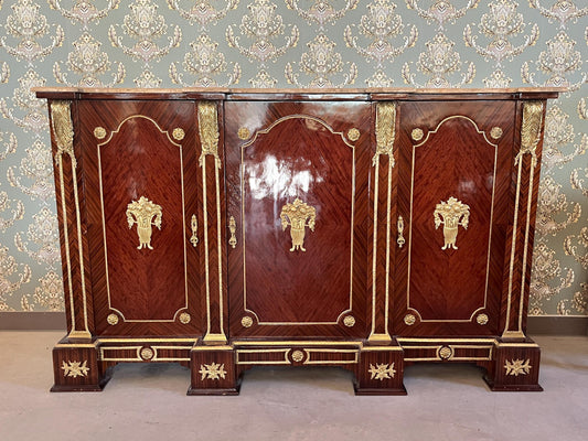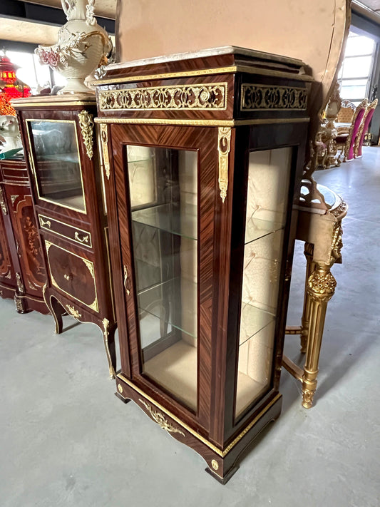French Antique Style Display Cabinet: Retro Baroque Wood & Marble