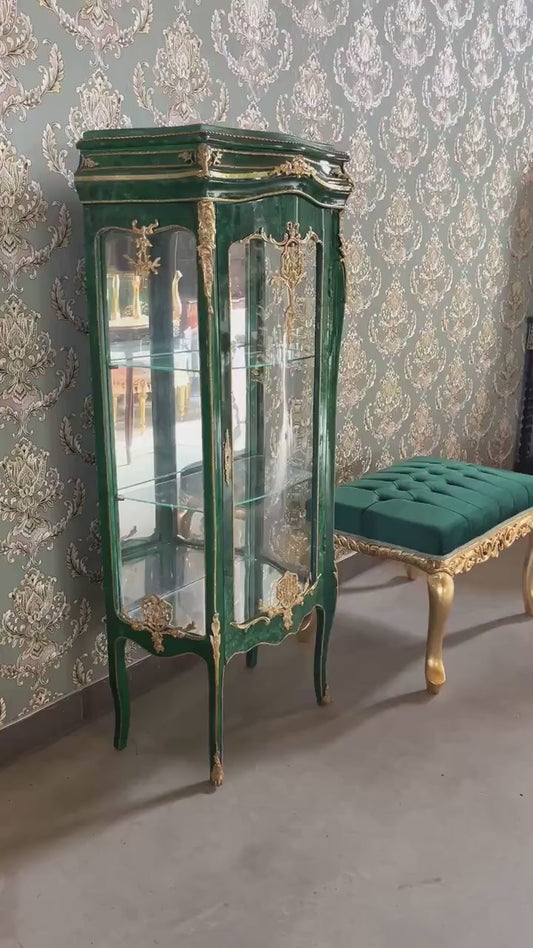 Emerald Green Display Cabinet: French Baroque Style, Marble Top
