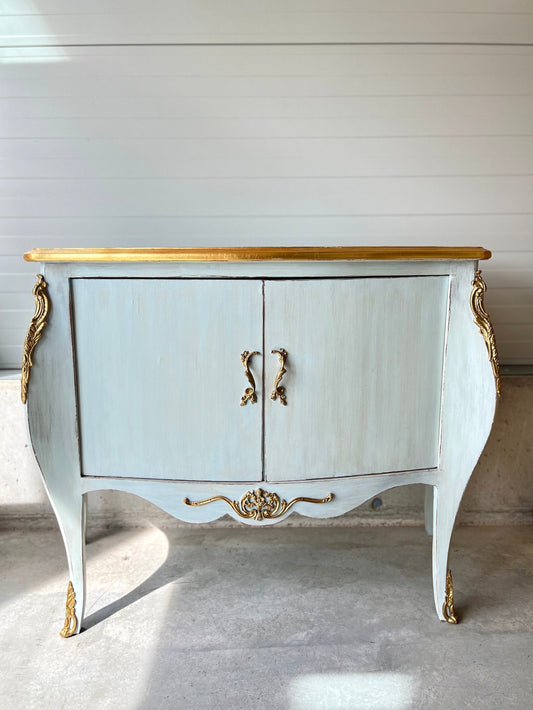 Cabinet French Baroque Style Sky Blue Color Retro Antique Style Cupboard with Bronze Ornaments for Lodge or Home Decor