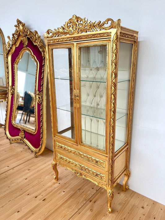 Display Cabinet in Gold Wooden French Baroque Style Glass Showcase in Glass Mirror Made-To-Order