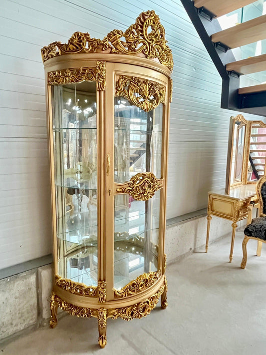 Display Cabinet French Louis Style Showcase in Gold Finish Retro Baroque Antique Style for Home Decor- Made to Order