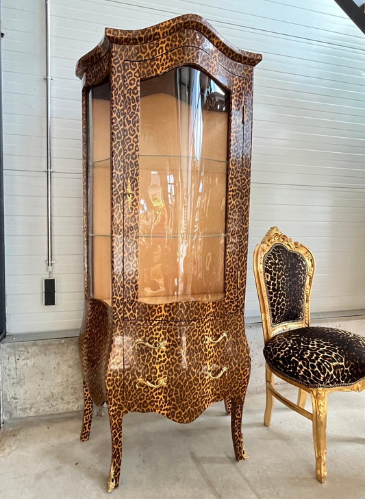 Leopard Print Display Cabinet: French Antique Style Vitrine