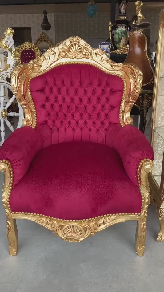 Santa Clause Red Velvet Armchair: French Baroque Style, Hand-Carved Beech Wood, Gold Foil Finish