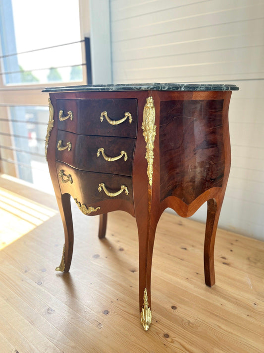 Louis Baroque Style Nightstand: Marble Top Bedside Table