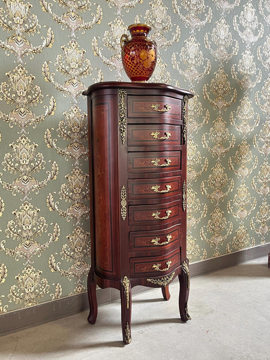 Hohe geschwungene Kommode im Barockstil / Baroque Style Tall Curved Chest of Drawer