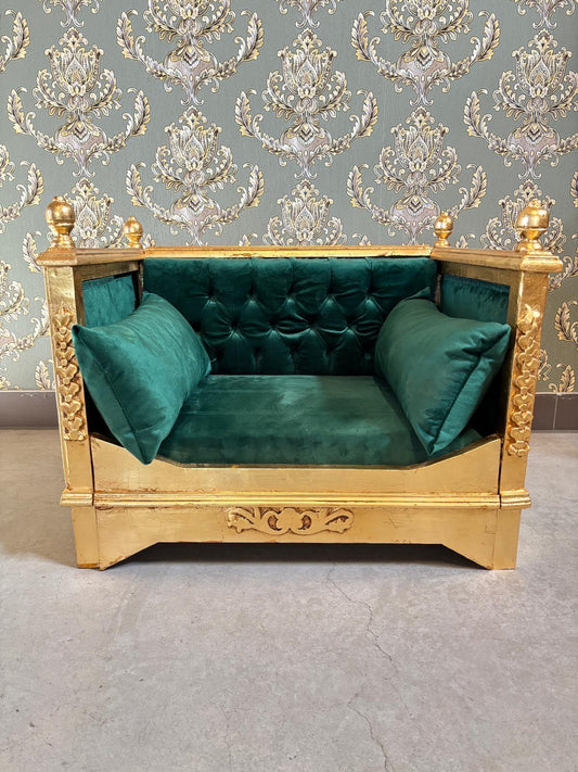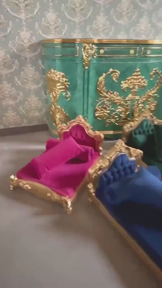 French Louis Baroque Pet Bed: Handmade Velvet Dog/Cat Bed, Gold Finish