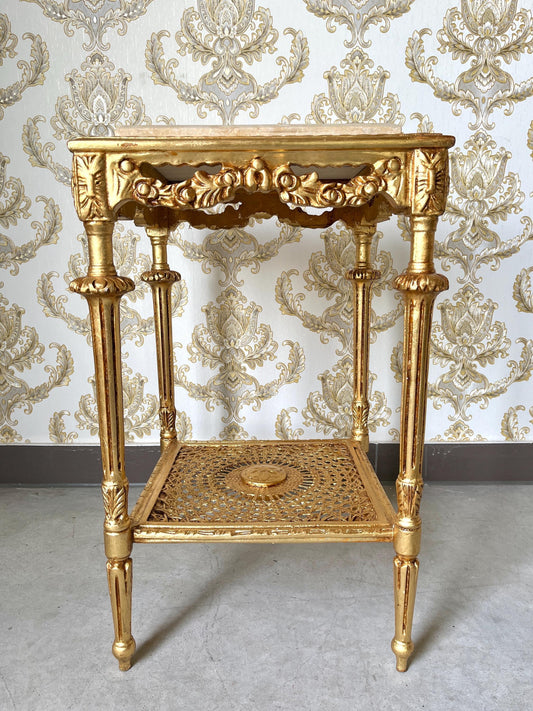 French Baroque Style Side Table: Gold Beech Wood with Marble Top