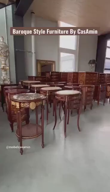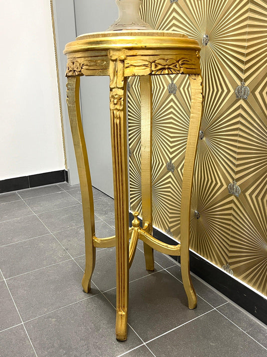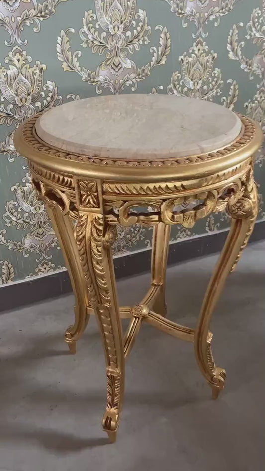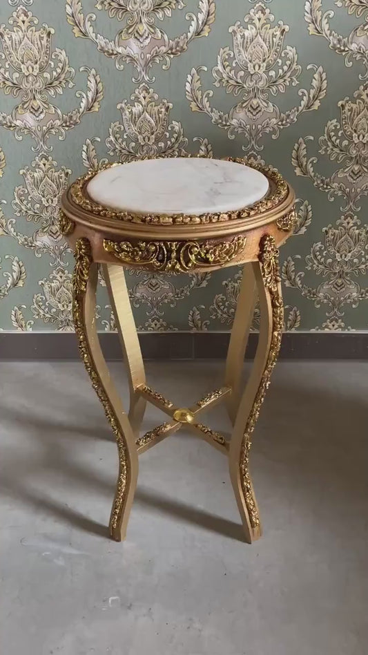 Baroque Style Marble Top Side Table: Gold Foil Finish, Solid Wood