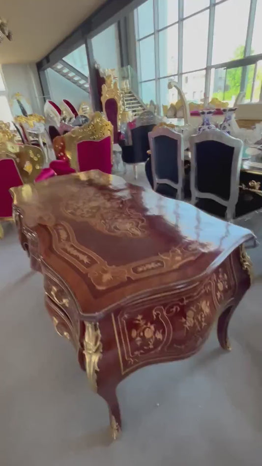Limitierter handgefertigter Schreibtisch im Barockstil/ Limited Deluxe Desk in French Baroque Style Wooden Desk Nostalgic Antique Look Brown