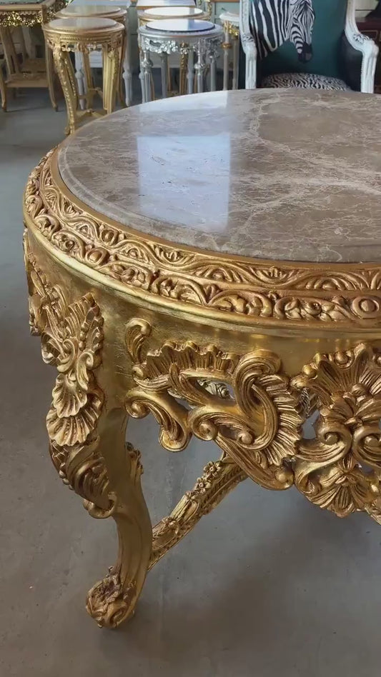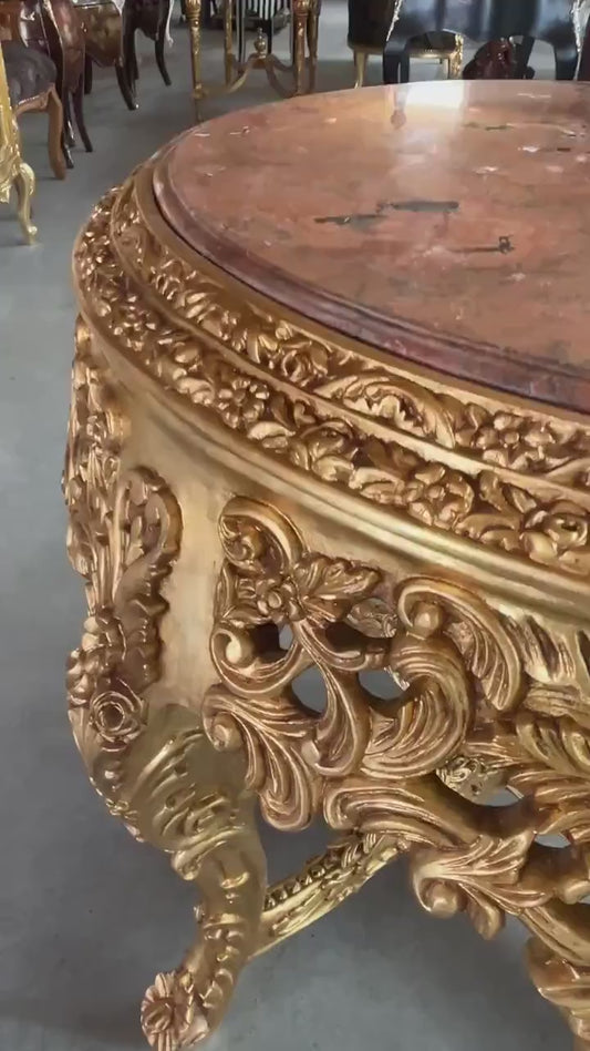 Royal Baroque Style Marble Top Table: Gold Finish Wooden Round Table