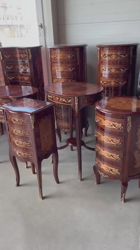 Handcrafted Baroque Side Table: French Antique Style, Solid Beech Wood, Oval Shape, Flower Pattern