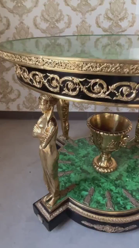 Emerald Green Round Table: Antique Rococo Style, Bronze Legs
