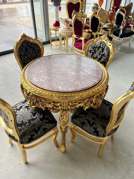Baroque Rococo Style Marble Top Round Table - Gold Finish