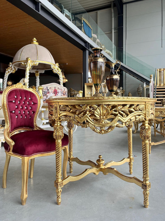 Handmade Gold Round Dining Table: French Baroque Antique Style for Xmas Home Decor