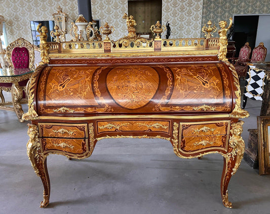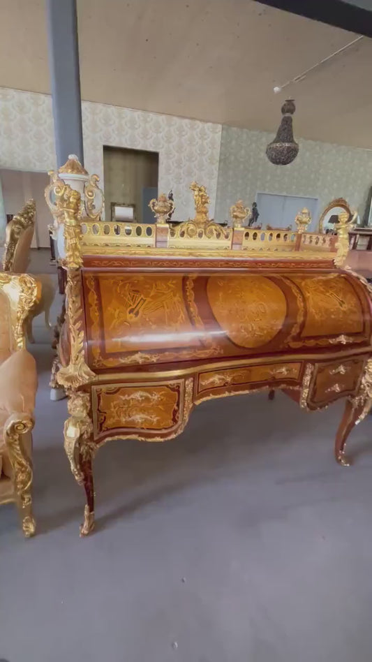 Handcrafted Baroque Style Secretary Desk with Organizer Shelf: Royal Antique Style, Bronze Ornaments Decor