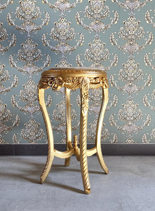 Retro Baroque Rococo Style Marble Top Side Table - Gold Finish