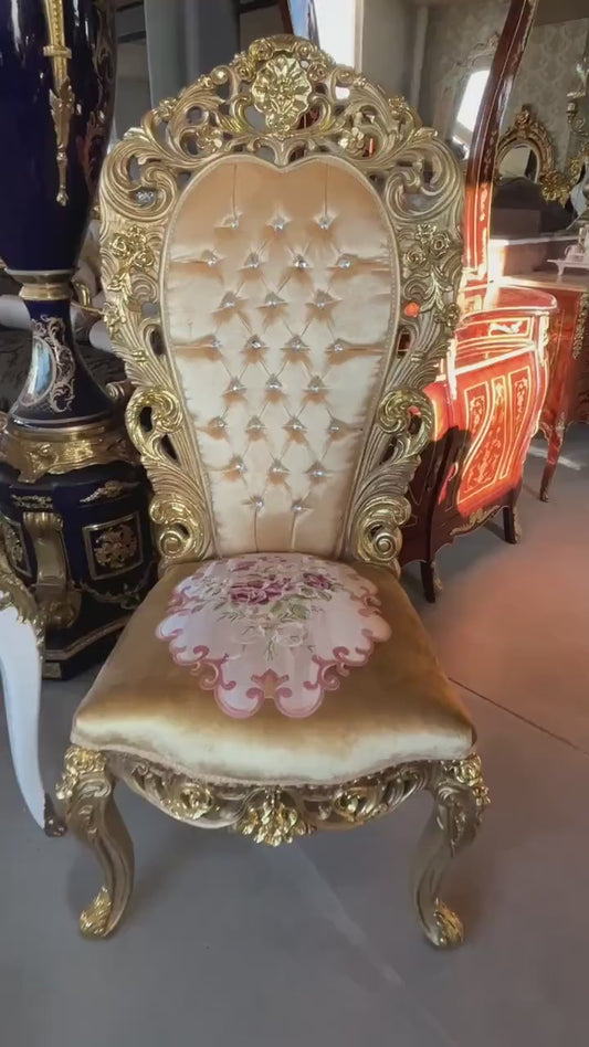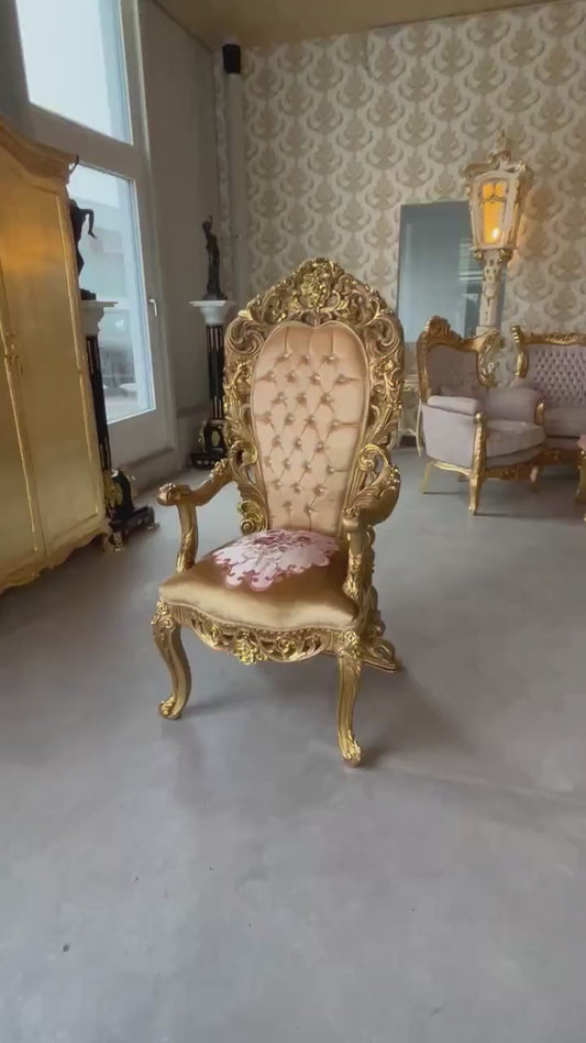 Throne Italian Baroque Rococo Style Armchair in Gold Finish Good for Wedding or Event Decoration
