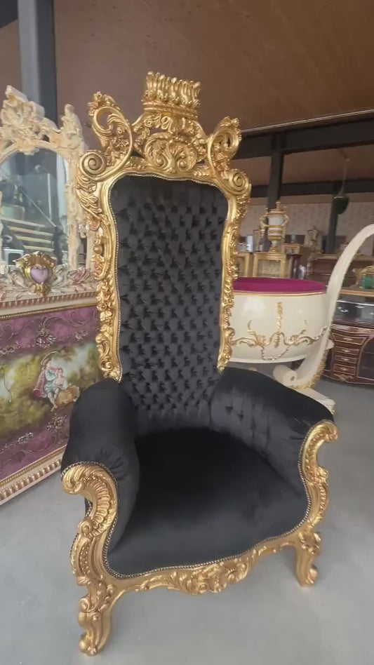 Italiaanse barokke antieke stijl koningstroon / Italian Baroque Antique Style Royal Throne- Gold