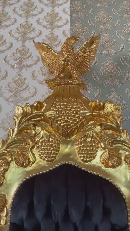 Baroque Rococo King Throne Armchair: Black Velvet, Gold Eagle