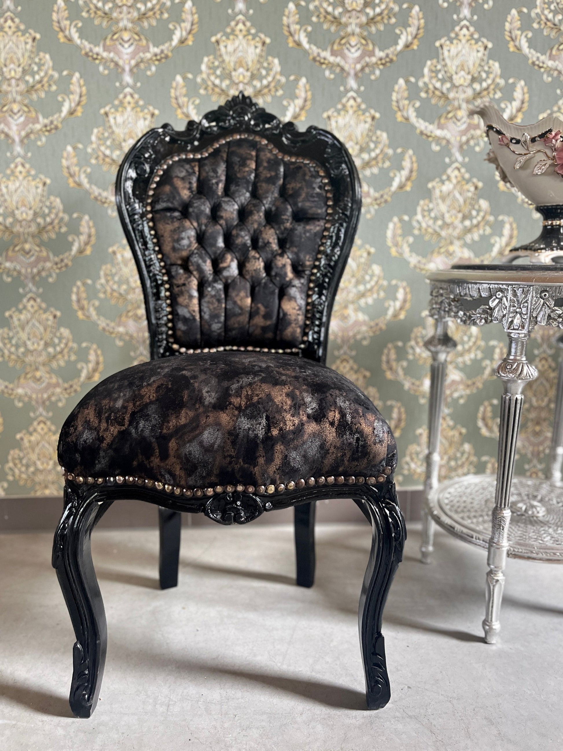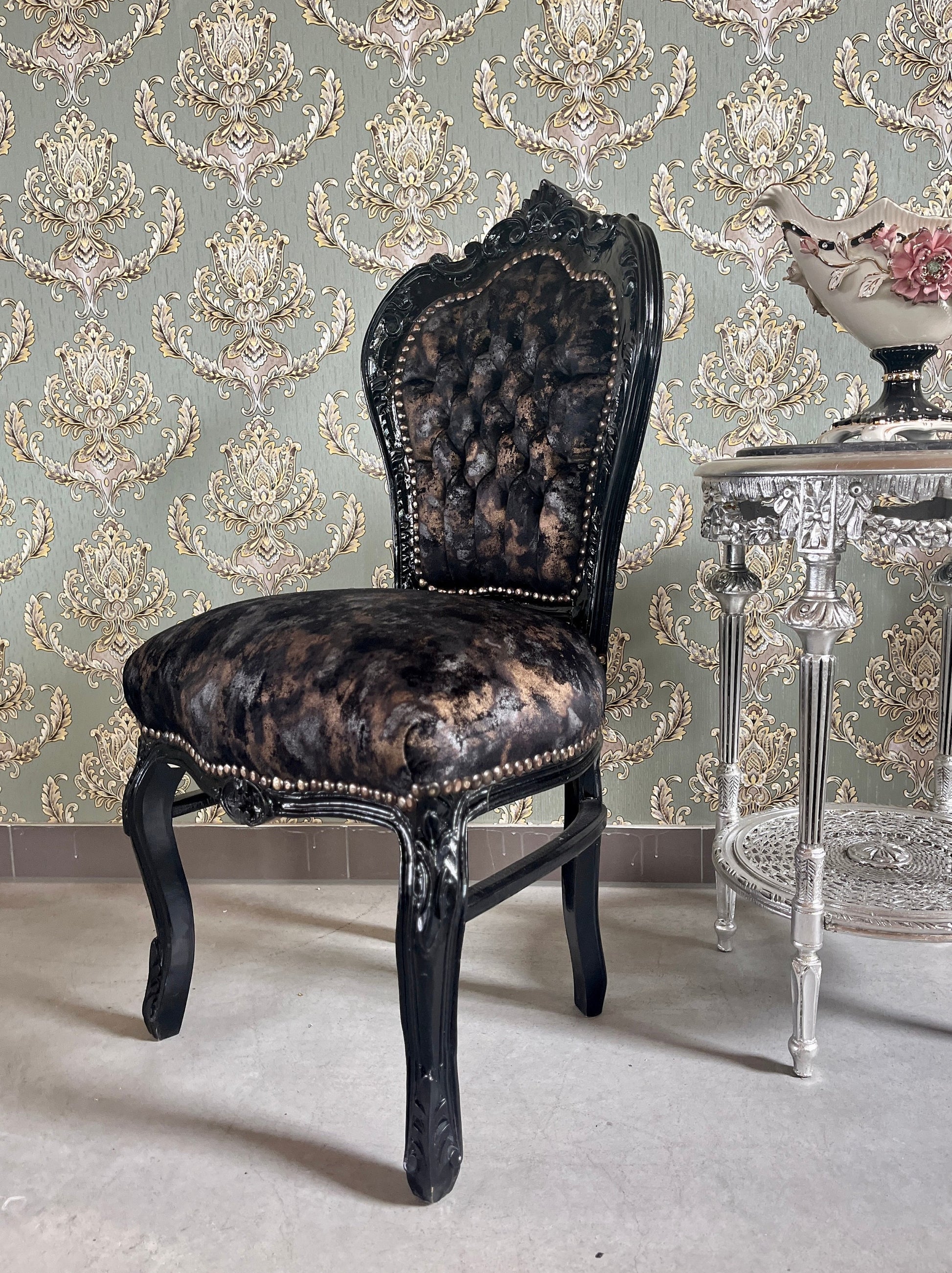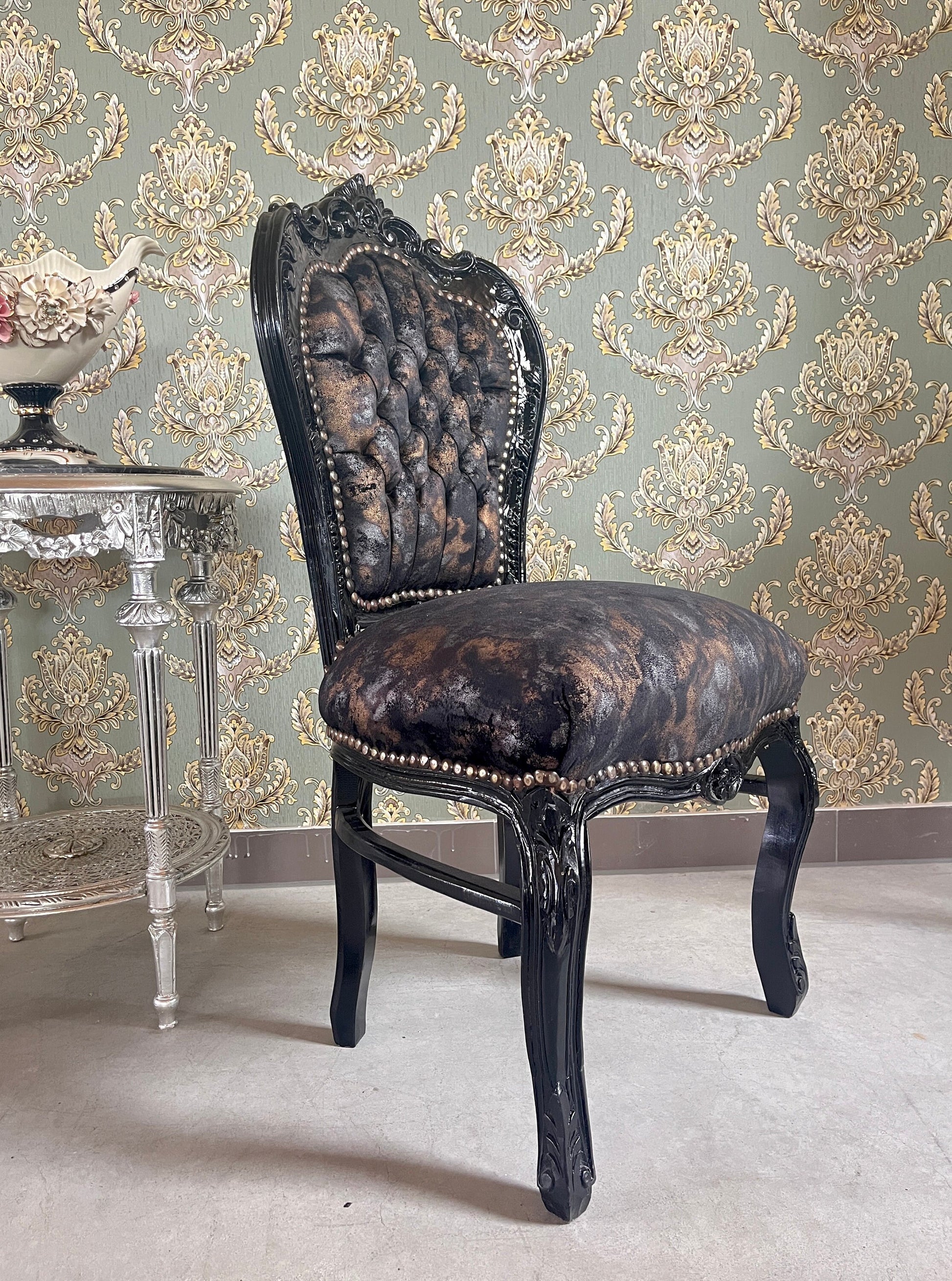 Accent Chair French Louis Style Dining Chair in Midnight Black Velvet Retro Baroque Rococo Style Chair in Brown Velvet for Home Décor