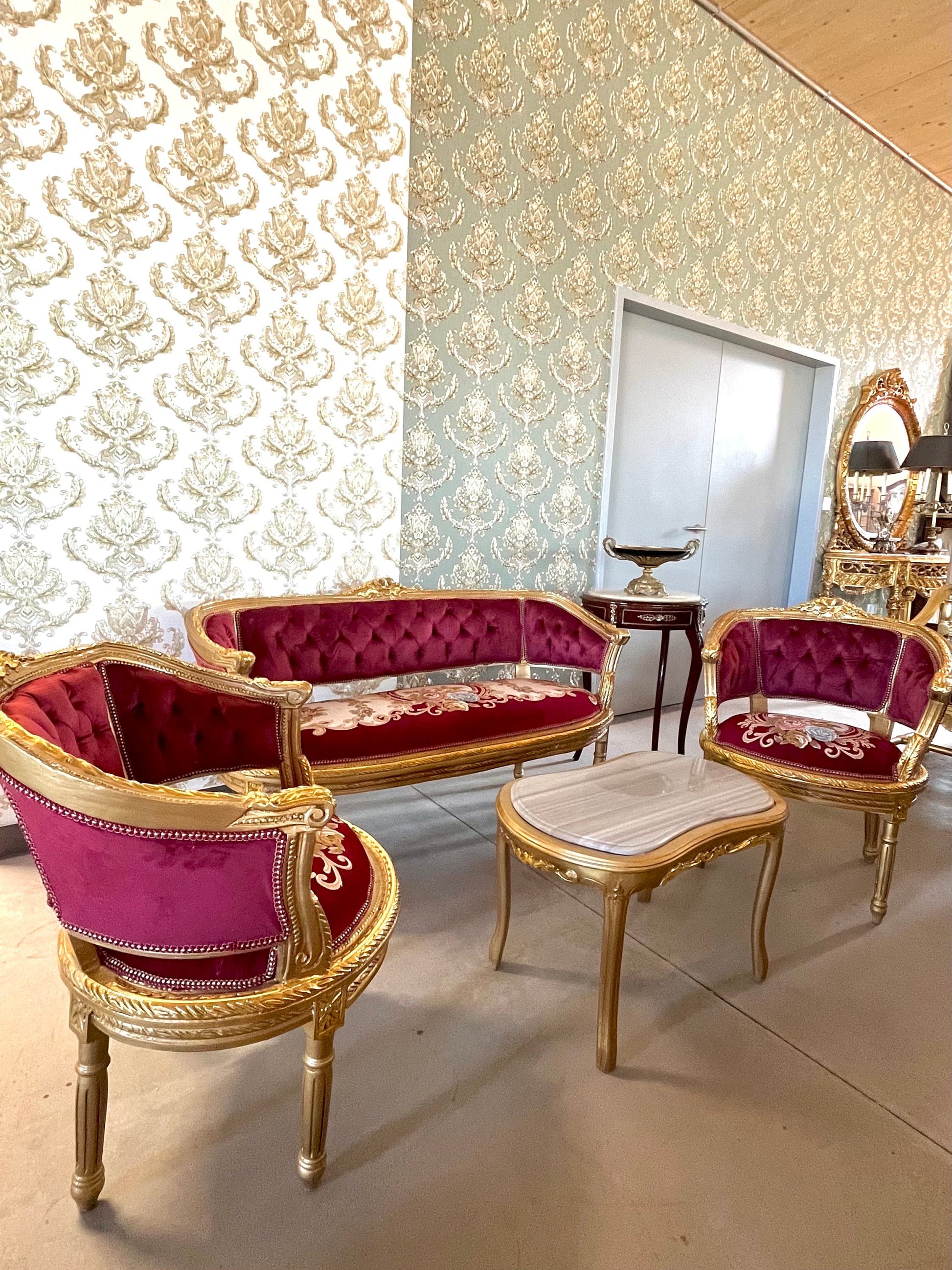 Antique Style Sofa Set Red French Baroque Style Sofa Set in Bordeaux Color French Style Sofa for Lounge Room