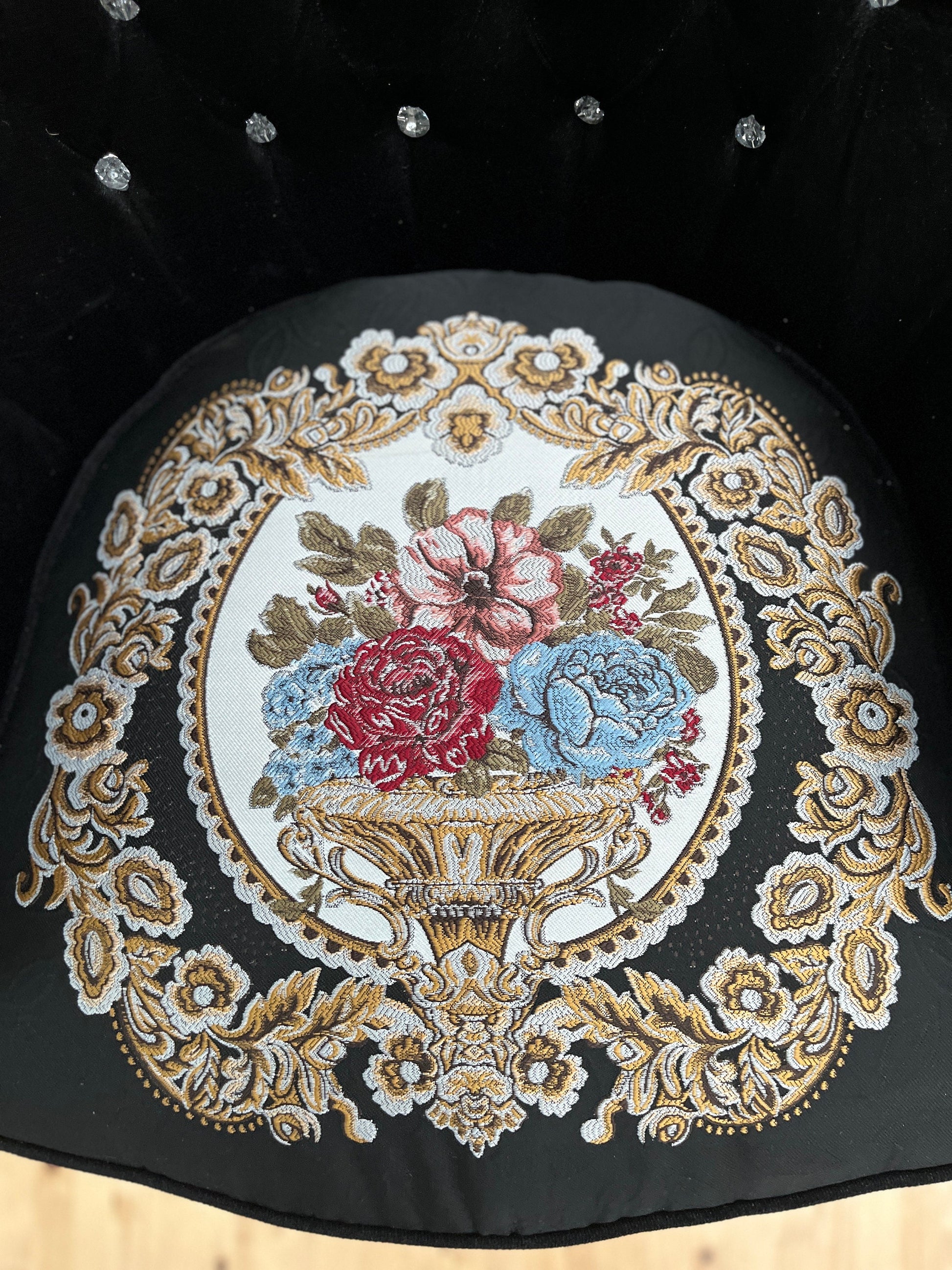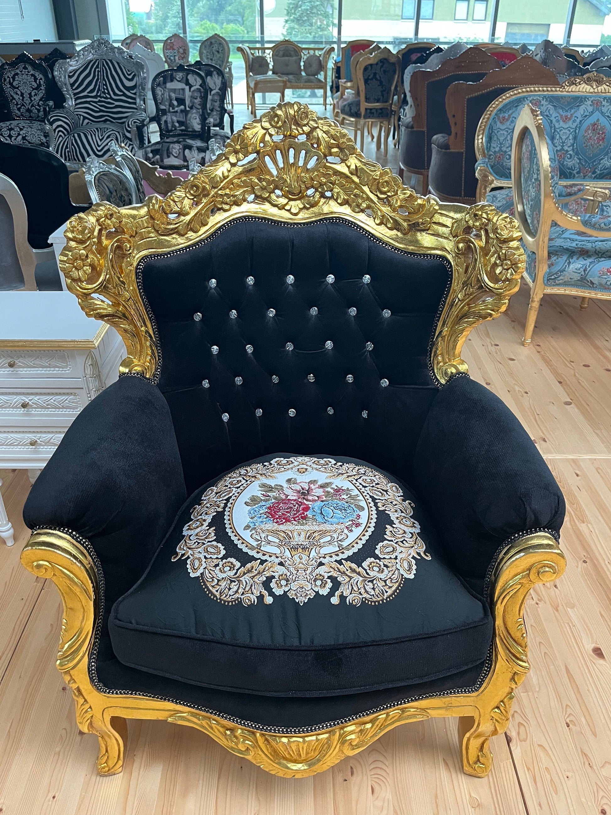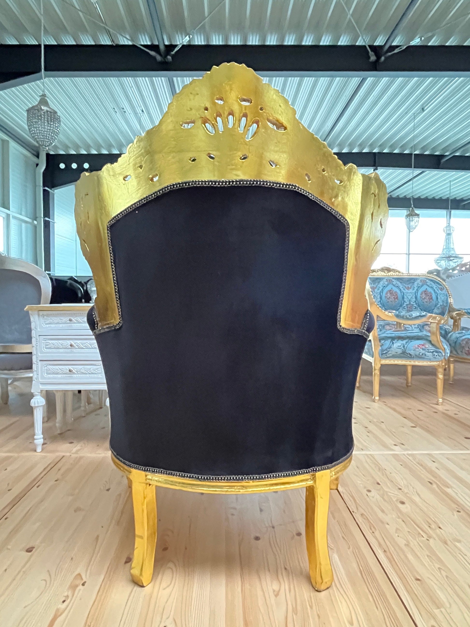 Armchair French Baroque Rococo Style in Black Embroidered Gold Finish Retro Home Decor
