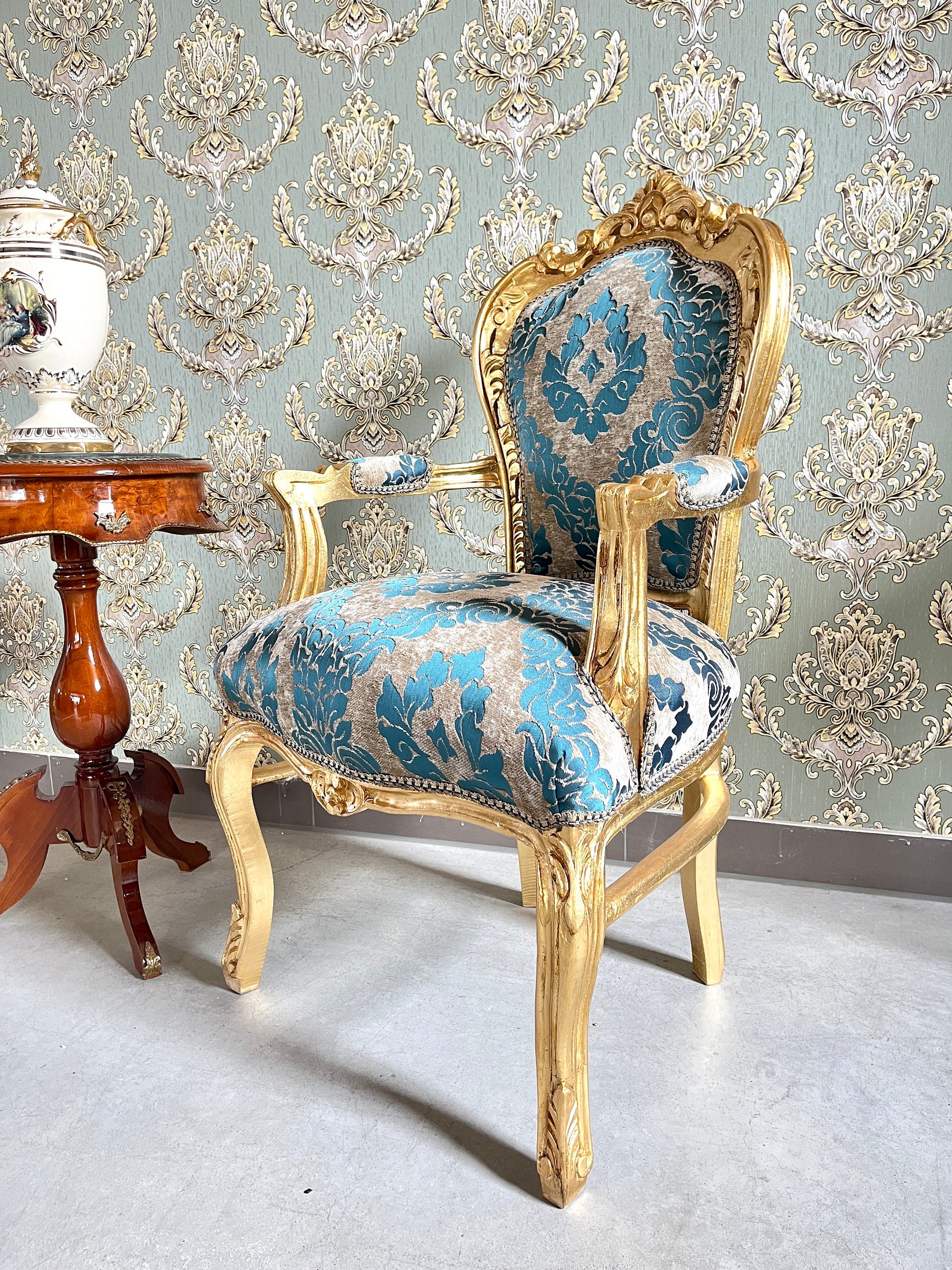 Armchair French Louis Style Accent Chair Baroque Rococo Antique Style in Pink or Turquoise Floral Pattern for Home Decor for Lodge Lobby