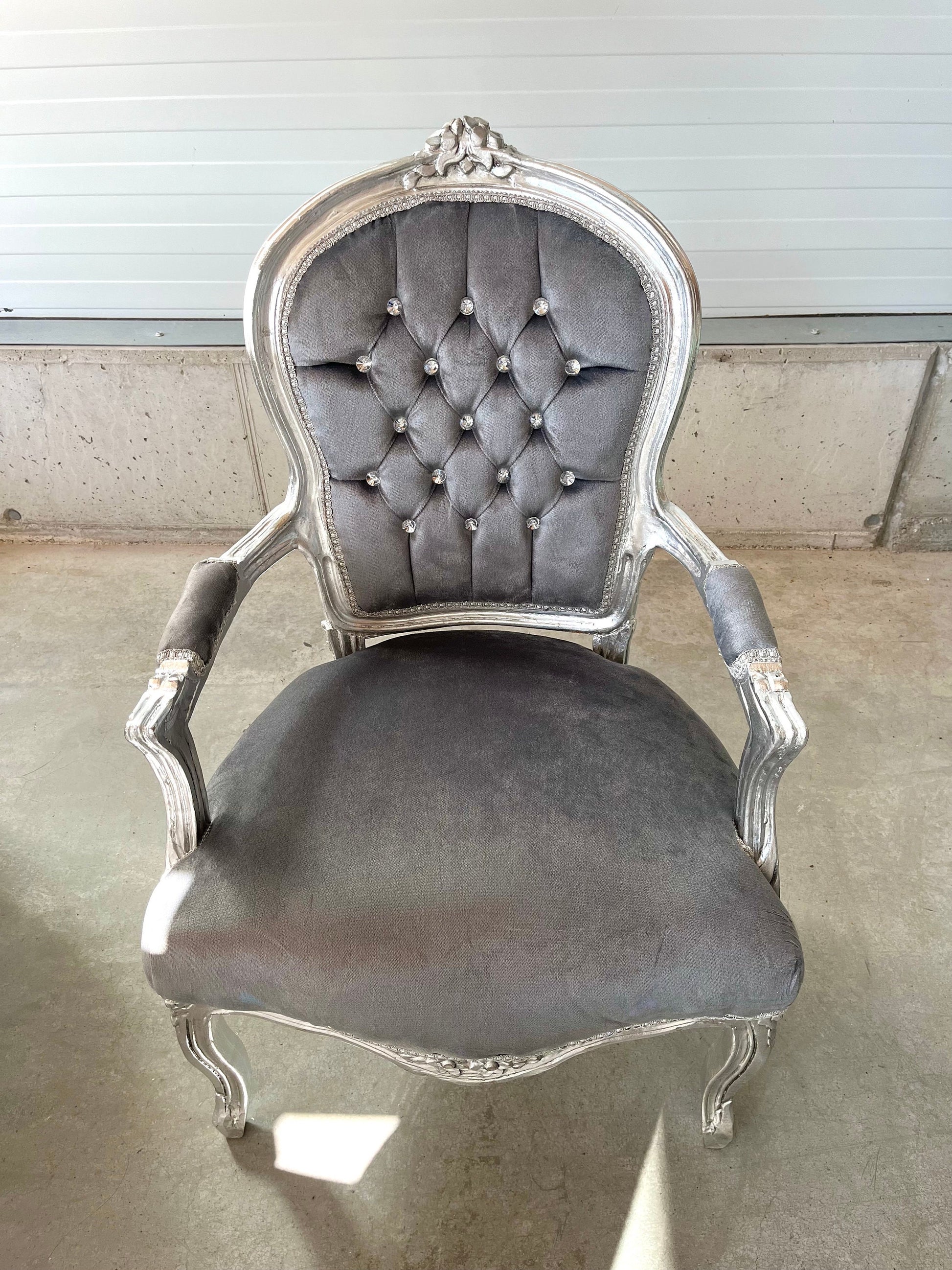 Armchair French Louis Style Grey Velvet Chair Antique Style Silver Finish Baroque Rococo Style Armchair for Home