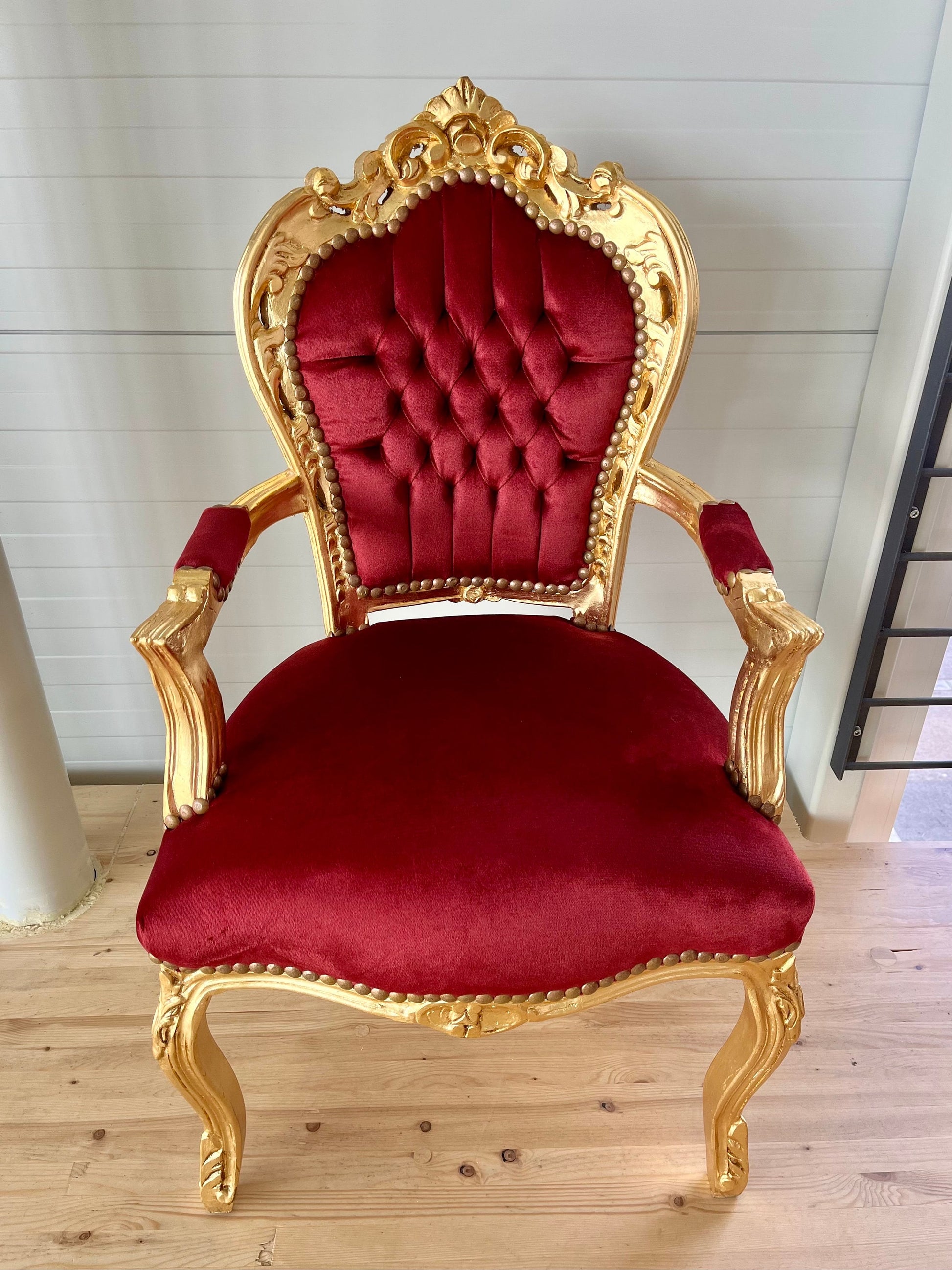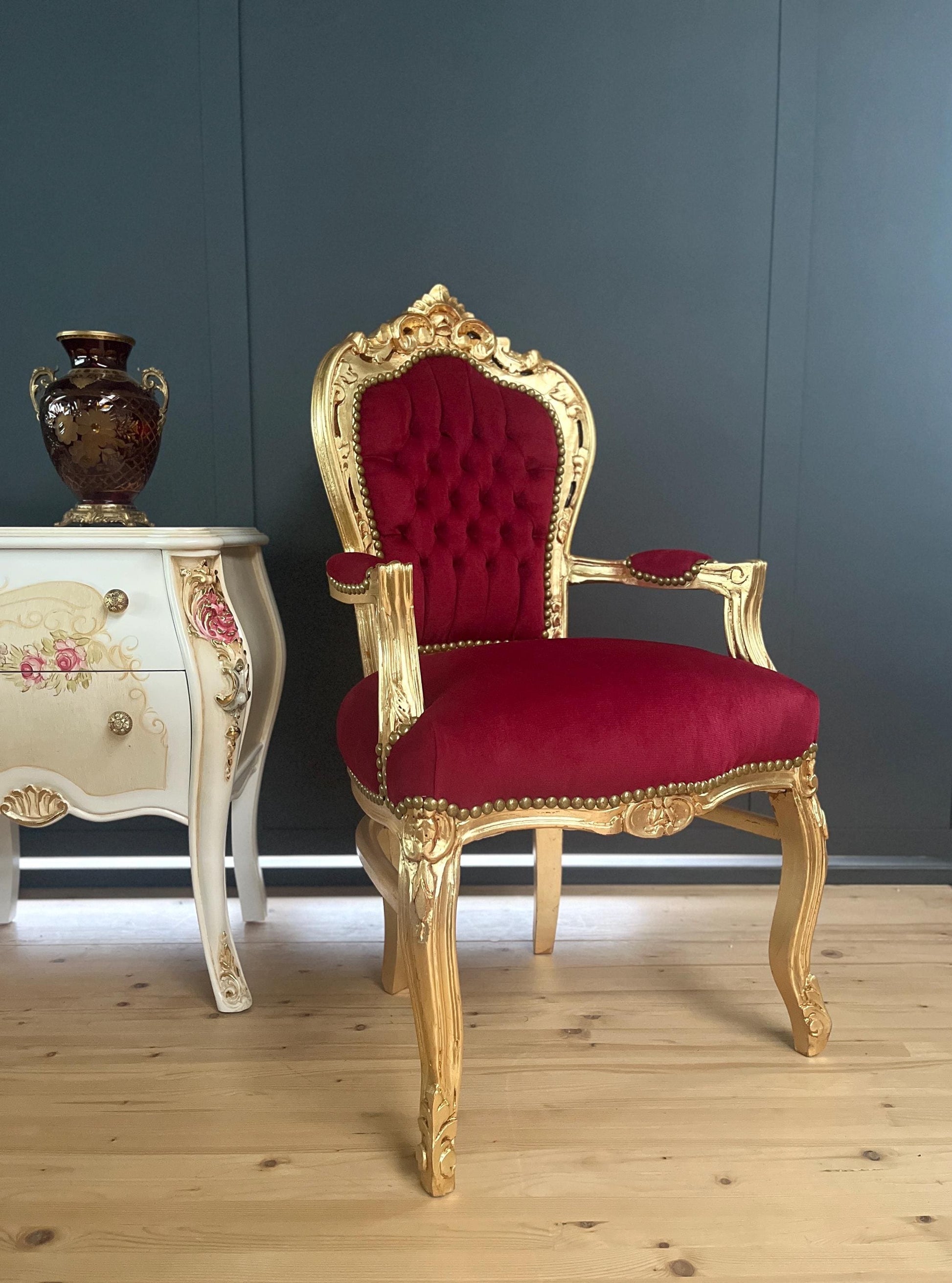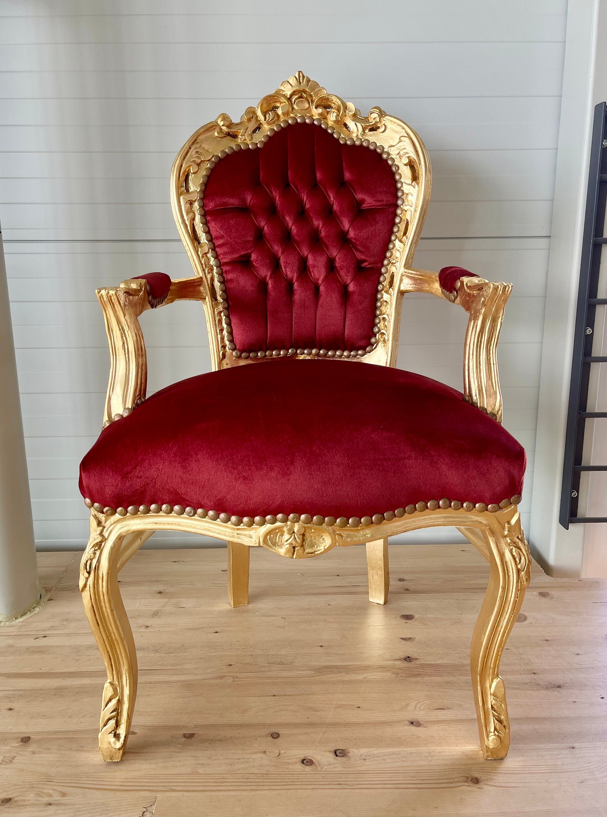 Armchair French Louis Style Red Velvet Dining Chair Antique Style Baroque Rococo Style Armchair in Gold Finish for Home