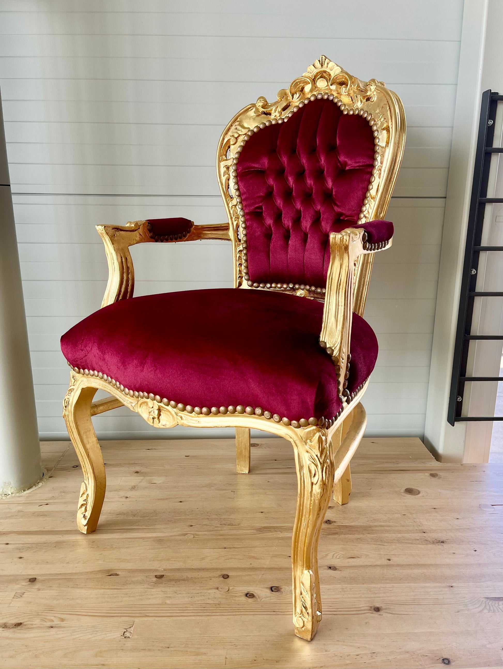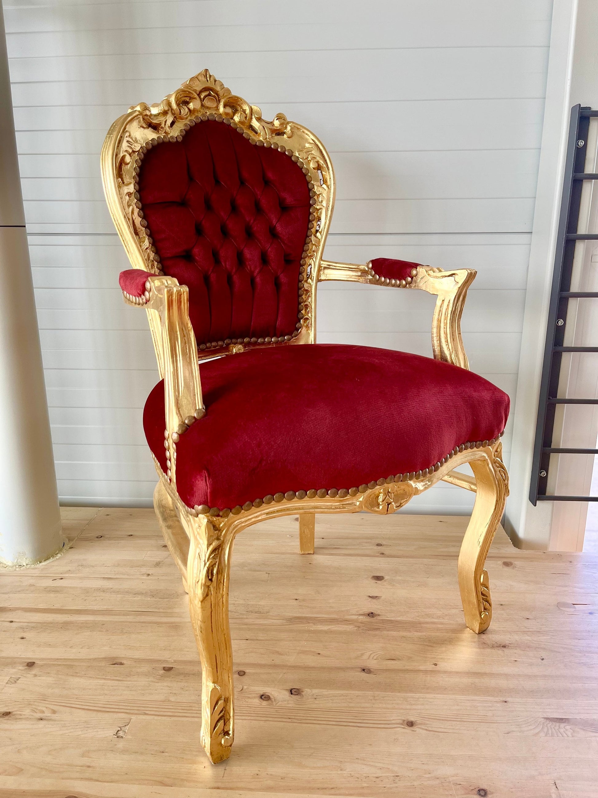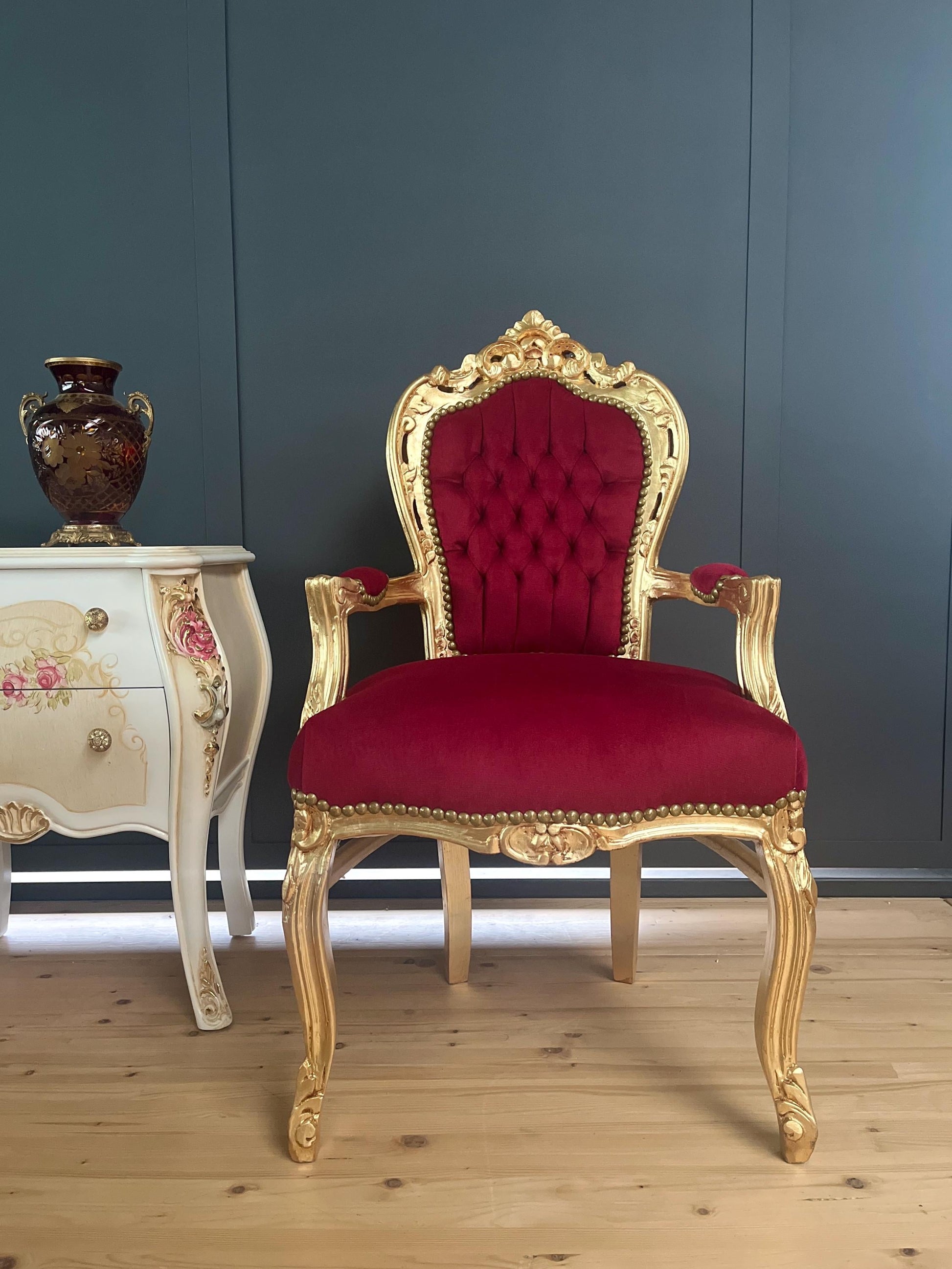 Armchair French Louis Style Red Velvet Dining Chair Antique Style Baroque Rococo Style Armchair in Gold Finish for Home